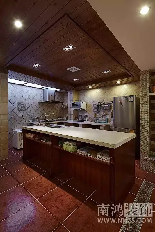 27除非廚房很小,一般的話可以嘗試白色以外的色調,最好用暖色系的,可以考慮2種顏色間配,有家的感覺而不是餐廳后廚的感覺。28廚房地磚一定要防滑的,最好在操作區放個地墊。